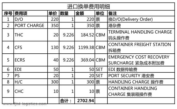 不同貨代,進(jìn)口換單費(fèi)千差萬(wàn)別。進(jìn)口貨代發(fā)給收貨人的對(duì)賬單上通常包括:換D/O費(fèi)、THC費(fèi)、數(shù)據(jù)傳輸費(fèi)、文件費(fèi)、港雜費(fèi)、港安費(fèi)、拆箱費(fèi)、操作費(fèi)等。有的貨代會(huì)給一個(gè)費(fèi)用明細(xì),有的貨代只給一個(gè)總費(fèi)用。給費(fèi)用明細(xì)的好理解,給總費(fèi)用的,作為收貨人一般都不知道具體有哪些費(fèi)用,更要命的是給一個(gè)總費(fèi)用不要緊,且費(fèi)用名稱(chēng)就叫“換單費(fèi)”,這時(shí)候收貨人會(huì)被“嚇到”——換單費(fèi)怎么那么高?筆者就遇到國(guó)這種情況,結(jié)果一問(wèn),才知道所謂的換單費(fèi)竟然包括了如下一大堆費(fèi)用: