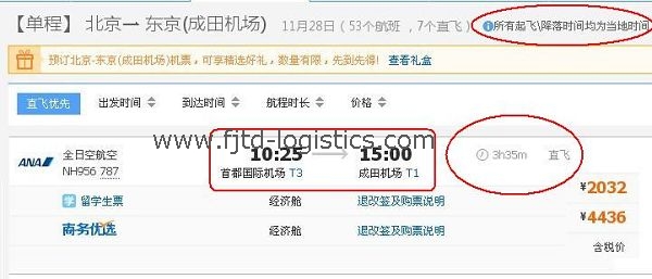 ETD Beijing 10:25(北京時間);ETA Tokyo 13:00(東京時間);表面上看,北京-東京飛行時間=15點-10點25=4小時35分。因為東京時間比北京時間早一個小時,實際飛行時間應(yīng)為:(15點-10點25)-1=3小時35分。