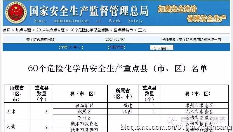 60個危險化學品安全生產(chǎn)重點縣(市、區(qū))名單