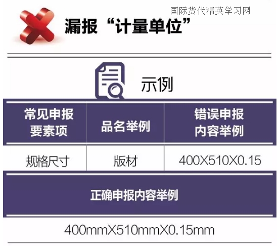 如:規(guī)格尺寸——板材;錯誤申報:400x510x0.15;正確申報:400x510x0.15mm。