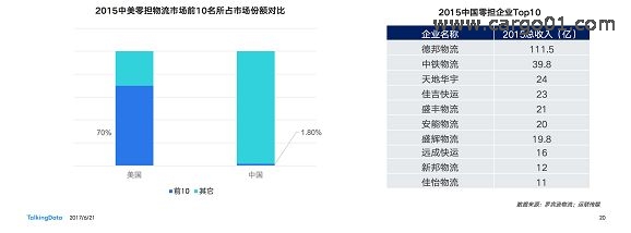 中國公路運(yùn)輸?shù)钠髽I(yè)有78萬家,“小”“散”“亂”“差”是行業(yè)最主要的問題。他們經(jīng)常表現(xiàn)為一人一車一電話的作坊模式。中國零擔(dān)市場前10名市場份額之和占行業(yè)整體的1.8%,美國零擔(dān)市場前10市場份額之和卻高達(dá)70%。頭部廠商的市場份額大,有利于充分調(diào)配資源,達(dá)到降低成本提升效率的目的。