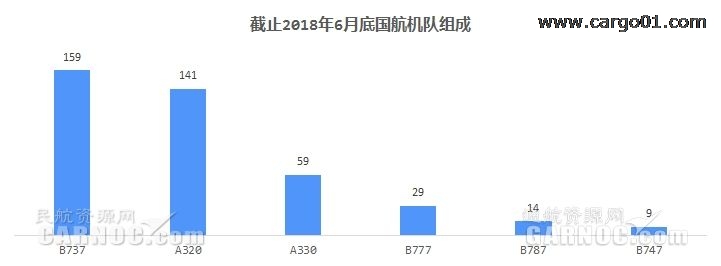 截止2018年6月底,國航客運飛機(jī)總數(shù)411架,占國內(nèi)機(jī)隊總數(shù)的12.8%;截止2018年6月底,國航B737,A320數(shù)量最多,分別為159架、141架。