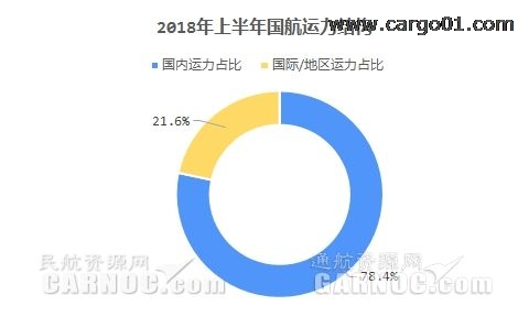 2018年上半年,國航國內(nèi)運力占比78.4%,相比2017年上半年下降0.5%,國際/地區(qū)運力占比21.6%,同比提高0.5%。