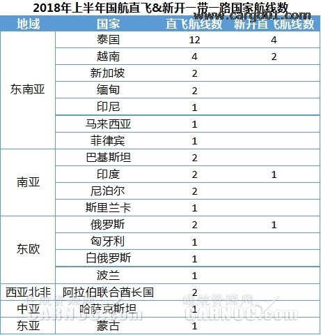 相比2017年上半年,國航新開8條直飛“一帶一路”沿線國家航線,其中新開直飛東南亞地區(qū)航線6條,南亞、東歐地區(qū)分別新開1條直飛航線。