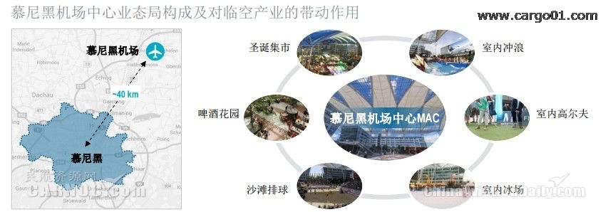 另外一個例子,整個機場里面如果有土地資源或者有更多的設施改造建設的能力,這個題材更加廣泛。我們這里面舉了一個例子:慕尼黑機場。右邊這個圖中間圓圈,慕尼黑中心有一個MAC是綜合體,打造了歐洲最大的機場室內(nèi)公共空間,每到夏天的時候,這里面人工運來很多沙子,打造成一個人工沙灘。冬天圣誕節(jié)前夕是一個集市,這個空間里面每年舉行主題活動。有很多人并不是航空乘客,功能甚至是拓展到機場周邊的居住社區(qū)。所以在慕尼黑機場,周圍很多居住的居民,會把這個地方當成整個城市生活里面非常重要的活動場地。在這里實現(xiàn)了一些非常好的收入和創(chuàng)收。