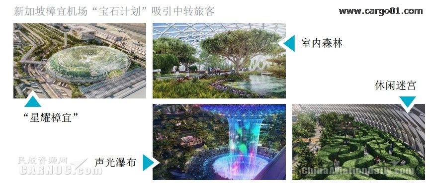 另外,這里面呈現(xiàn)的圖片有室內(nèi)森林,包括休閑迷宮等等。這樣一個改造,其實幫助新加坡樟宜機場實現(xiàn)了一個非常重要的轉(zhuǎn)型,從傳統(tǒng)的交運基礎設施,打造成一個具有非常強的旅游目的地屬性的地方。
