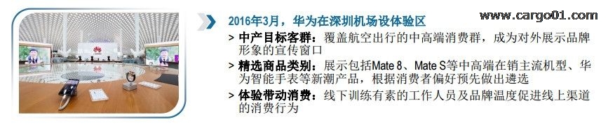 第四:客群深研定向聚焦。中國大型機場其實有相當大的流量是國內(nèi)航段,這里面也沒有免稅的福利等等,非航的激活如何去做?這里面舉了兩個例子,機場本身對于航空出行完成了一個天然篩選,航空乘客消費能力、意愿是比較高的。在深圳機場,華為公司在深圳機場的入口處,非常好的一個地段,設立了一個展示店。