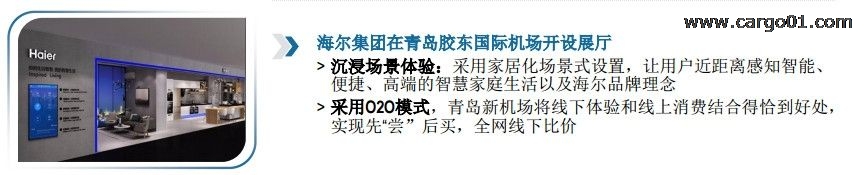 其實從另外一個角度,這種乘客其實還有巨大的消費精力,而且有很多商務客平時很忙,在機場反倒是難得的有一點個人空閑時間去想一點個人事情,或者是滿足一些個人消費愿意,這時機場是一個非常好的窗口。這里面還有一個例子,是海爾集團在機場的一個旗艦店,智能家電的一個全場景的呈現(xiàn)。