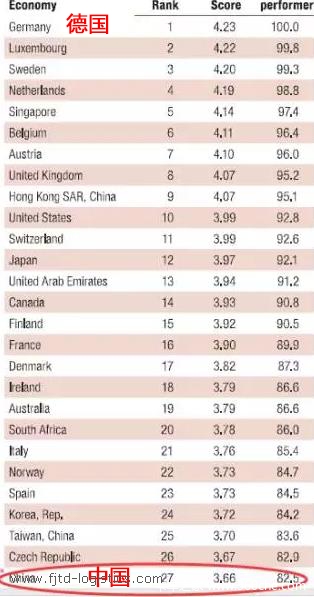 2、德國(guó)連續(xù)三屆蟬聯(lián)榜首,中國(guó)27位