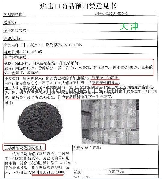 您現(xiàn)在的位置:首頁 >> 物流學(xué)堂 >> 報關(guān)指南>>螺旋藻粉/小球藻的HS海關(guān)編碼是多少?