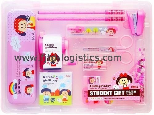 比如:文具組合套裝,套裝包括各種產(chǎn)品如簽字筆、水彩筆、圓珠筆、彩色鉛筆、蠟筆、塑料尺、圓規(guī)、卷筆刀、橡皮擦、改正液、等,吸塑盒包裝……可以歸到9608500000:含有兩種筆及以上的成套貨品(指品目9608所列的各種筆)嗎?