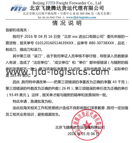經(jīng)常做報關(guān)的應(yīng)該知道,在進出口申報中,并不是所有的申報錯誤都可以申請更改的,尤其是海關(guān)放行之后。如果你認為申報有誤,需要改單,就要寫《情況說明》,向海關(guān)書面解釋錯誤的原因、類型以及如何更改。海關(guān)會根據(jù)相關(guān)規(guī)定確定你的更改申請是否合理。如果合理,給予更改;如果不合理,不給更改。