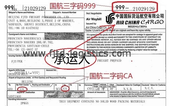 對空運而言,承運人Carrier就是航空公司(Airlines)。如中國國際航空,CA