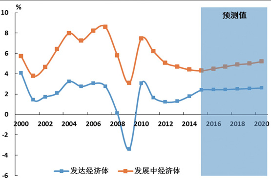 圖2 發(fā)達(dá)經(jīng)濟(jì)體與發(fā)展中經(jīng)濟(jì)體增速