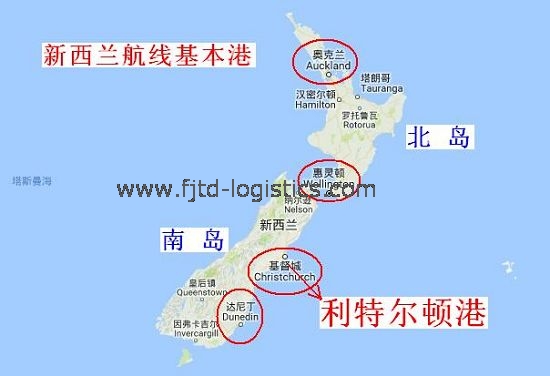 新西蘭航線港口明細如下: