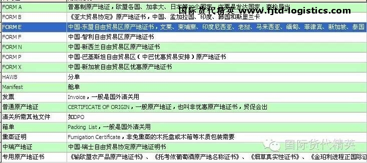 2)根據(jù)我國與不同國家簽訂的雙邊或多變貿(mào)易協(xié)議,原產(chǎn)地證分為很多格式,比如針對發(fā)達(dá)國家的FORM A, 針對孟加拉國、印度、韓國、斯里蘭卡的FORM B,針對東盟國家的FORM E, 針對智利的FORM F,針對新西蘭的FORM N,針對新加坡的FORM X等。