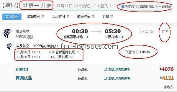 這里05:30指的是開羅當?shù)貢r間,不是北京時間。開羅和北京所處時區(qū)不同,根據(jù)國際時差,開羅時間比北京時間晚6個小時。在北京起飛時間00:30,到達開羅的時間05:30。表面上看,好像北京-開羅只飛了5個小時。其實,不能這么計算飛行時間。因為00:30是北京時間,05:30是開羅時間,開羅時間又比北京時間晚6個小時,因此實際飛行時間應(yīng)為:(05:30-00:30)+6(時差)=11小時。