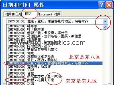 時差查詢方法2:通過電腦的“日期和時間屬性”查看