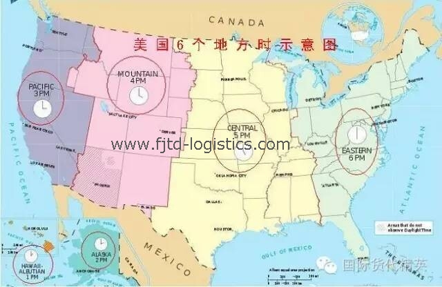 2)美國(guó)也是地域遼闊,橫跨6個(gè)時(shí)區(qū)(西五區(qū)—西十區(qū)),但美國(guó)沒(méi)有像中國(guó)一樣使用統(tǒng)一的“地方時(shí)”,而是有6個(gè)不同的“地方時(shí)”,分別是: