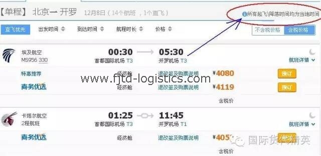 圖中的:00:30(首都國(guó)際機(jī)場(chǎng))→05:30(開(kāi)羅機(jī)場(chǎng))是什么意思?右上角的“所有起飛/降落時(shí)間均為當(dāng)?shù)貢r(shí)間”如何理解?