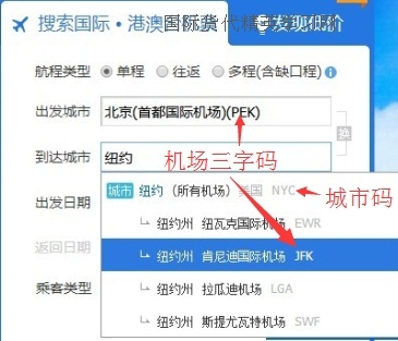 北京首都國(guó)際機(jī)場(chǎng)的IATA三字碼為PEK,上海浦東國(guó)際機(jī)場(chǎng)為PVG,廣州白云國(guó)際機(jī)場(chǎng)為CAN,洛杉磯國(guó)際機(jī)場(chǎng)為LAX,紐約肯尼迪國(guó)際機(jī)場(chǎng)為JFK,紐約紐瓦克國(guó)際機(jī)場(chǎng)為EWR,法蘭克福國(guó)際機(jī)場(chǎng)為FRA等。