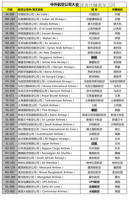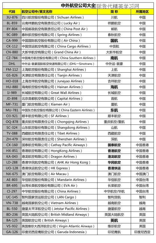 IATA代碼等4種常見(jiàn)空運(yùn)代碼例解(附中外航空公司大全