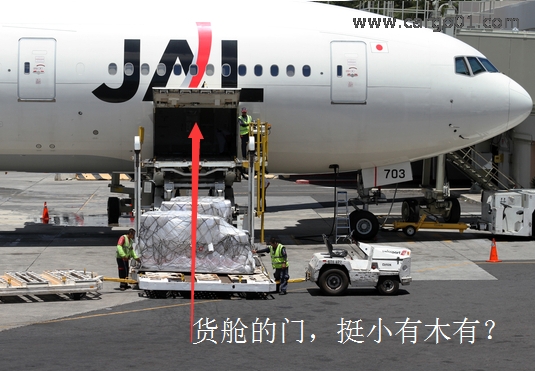 由于貨物只能通過艙門裝入貨艙內,貨物的尺寸必然會受到艙門的限制。寬體飛機和窄體飛機艙門的差別比較大。貨機更不用說了。