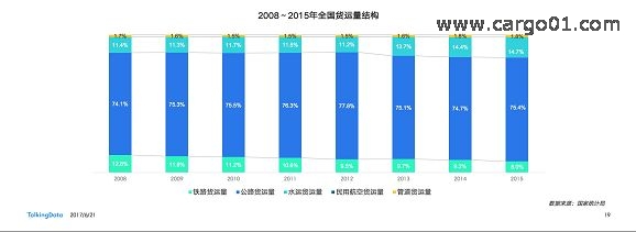 1)公路運(yùn)輸占比最高,達(dá)到國內(nèi)整體貨運(yùn)量的75%