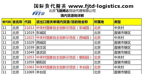 報關“境內(nèi)貨源地”和“境內(nèi)目的地”代碼表
