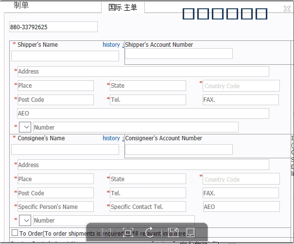 HU制單系統(tǒng)更新,盡量用WIN10和高版本的瀏覽器,錄單新增了收發(fā)貨人的營業(yè)號,收貨人還要錄聯(lián)系人的名字和個人電話!??!另外分單錄入界面也有變化?。?!帶*號的一定要錄完整?。。W線的也一定記得上傳發(fā)票?。?!